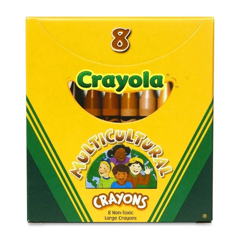 $7.90Crayola Large Multicultural Crayons come in an assortment of skin hues that give a child a realistic palette for coloring their world. Thick crayons are easy to grip. Ideal for little hands. Colors include black, sepia, peach, apricot, white, tan, mahogany and burnt sienna.