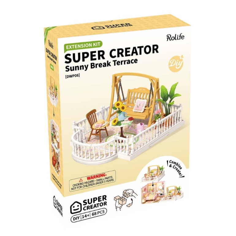 $32.90The Terrace Extension Pack is designed to connect with your Rolife Super Creator rooms. Just snap it on to expand a cozy balcony or a cute café corner. Whether you want a sunny spot to relax or a stylish space to hang out, this pack helps you build the lifestyle you love in miniature.